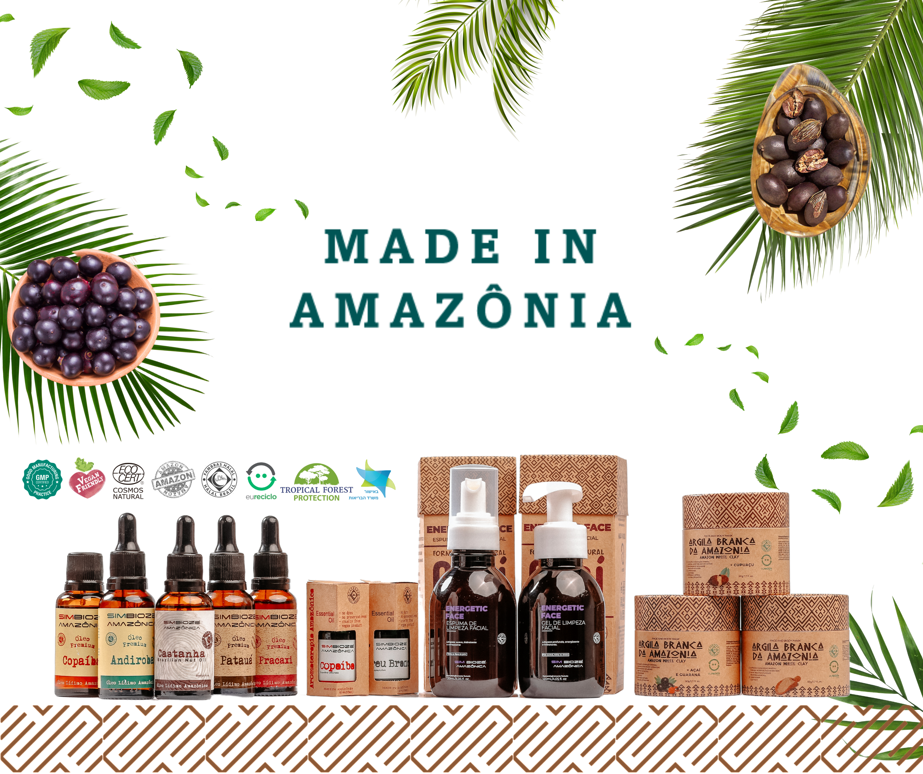 אנו מייצרים מוצרים 100% טבעיים, אורגניים ורפואיים, לטיפוח העור והשיער, לטיפול בדלקות ולהקלה על כאבים – על בסיס תמציות מצמחי המרפא העוצמתיים של יער האמזונס הקסום, תוך שימוש בטכניקות מקומיות, מסורתיות וברות קיימא, וללא פגיעה או הפרעה לטבע.