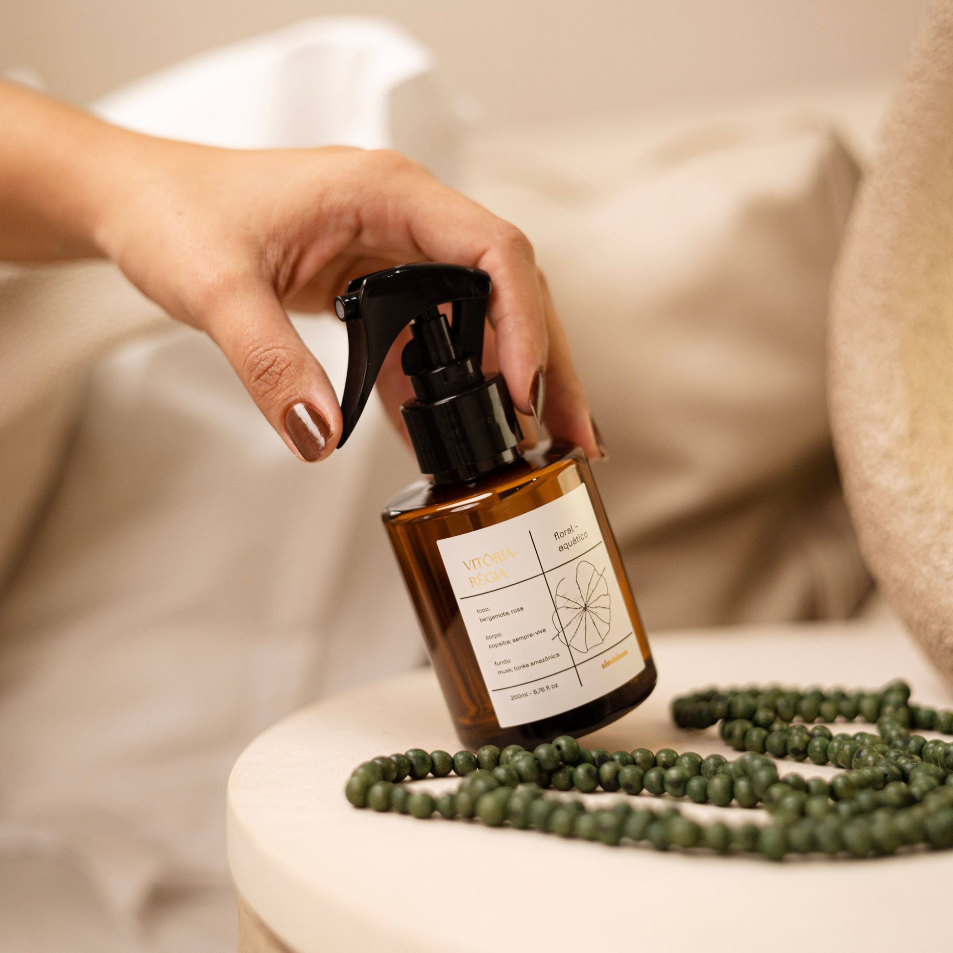 מבשם אוויר וִיטּוֹרְיָה רֵגְּ׳יַה, ניחוח נעים ועדין שמתפזר בלחיצה וממלא את החדר בתחושת מים רגועים, טבע נשי ואווירה קסומה.